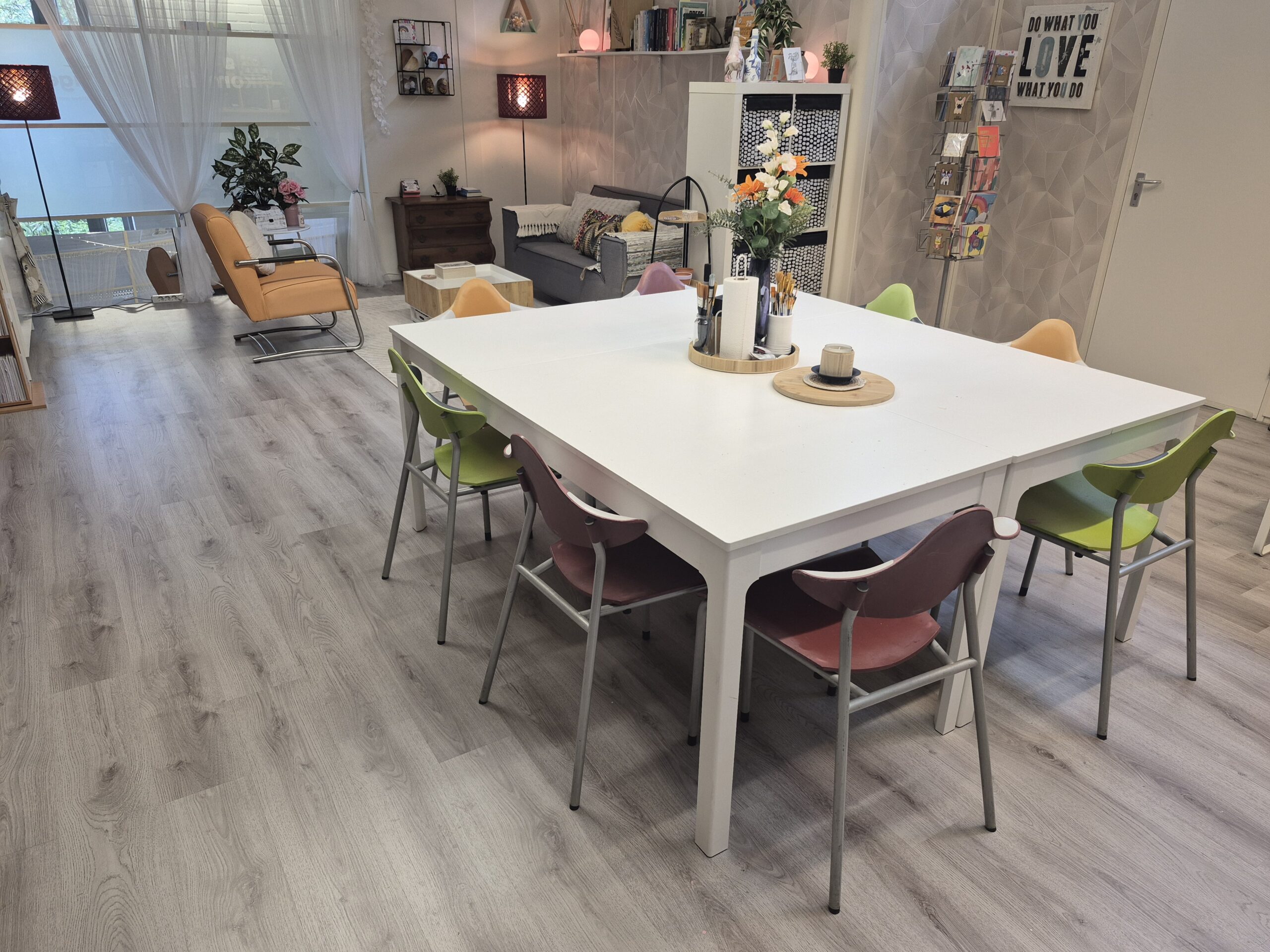 Graag delen we onze mooie ruimte vlak naast het centrum van Apeldoorn met jou. De ruimte is geschikt als praktijkruimte, werkruimte, creatieve werkplaats, vrijplaats, ruimte voor co-creatie en voor mensen die een workshop willen organiseren. Dus wil jij iets organiseren, een workshop aanbieden, ruimte nodig hebben als coach, sociaal werker, psycholoog of ander soort hulpverlener, stuur me gerust een bericht. Ook groepen die een gezellige (en creatieve) ruimte zoeken voor een activiteit of overleg zijn welkom.